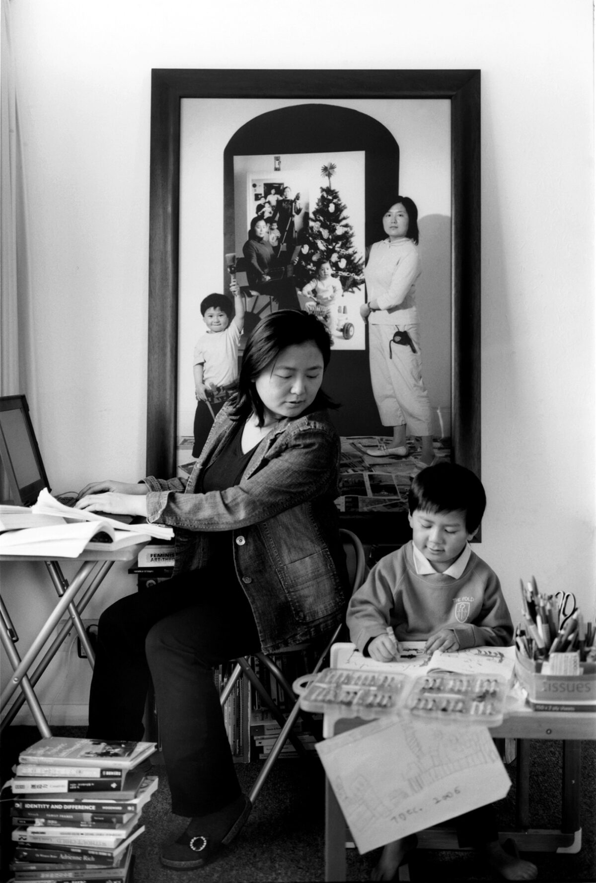 Cada año, Wang añadió un nuevo retrato en el que aparecía junto a su hijo frente a la fotografía anterior, generando una composición en capas que contiene, simultáneamente, todas las etapas de su vida compartida. Así, la serie se convierte en un archivo visual donde el tiempo se superpone y la maternidad deja de ser un instante fugaz para revelarse como un proyecto vital en permanente construcción.